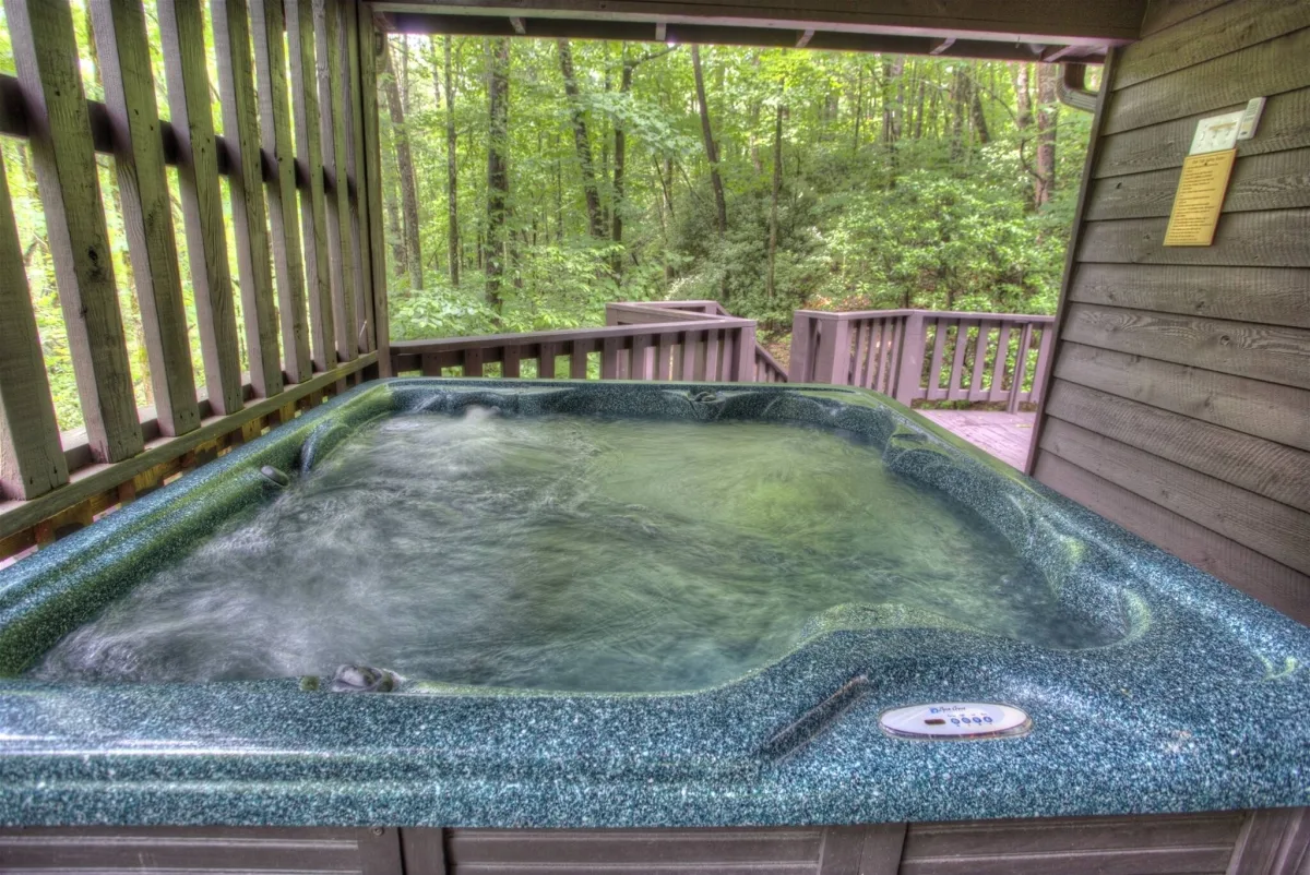 Yes โ Southern Seclusion features a private hot tub on the wrap-around covered deck, right next to the fire pit by the creek. It's one of the most private and peaceful settings in the area.