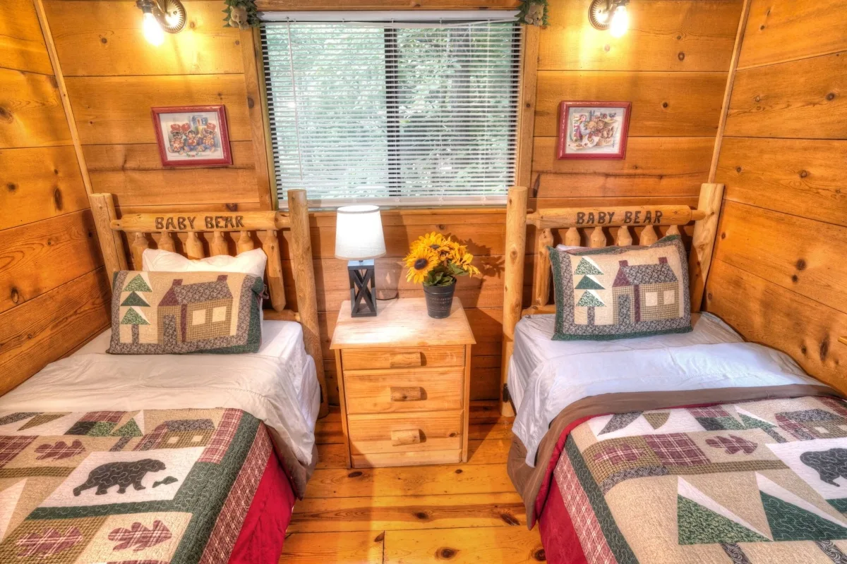 Three Bears Cabin sleeps up to 6 guests across 3 bedrooms and 2 full bathrooms. It's ideal for families and small groups looking for a cozy mountain retreat.