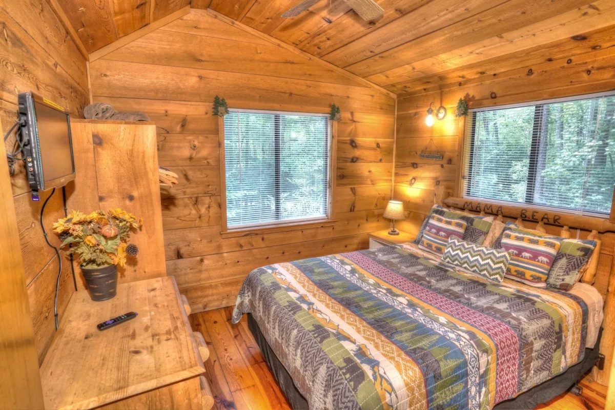 Yes — Three Bears features a private hot tub on the covered deck, perfect for relaxing after a day exploring the North Georgia Mountains.