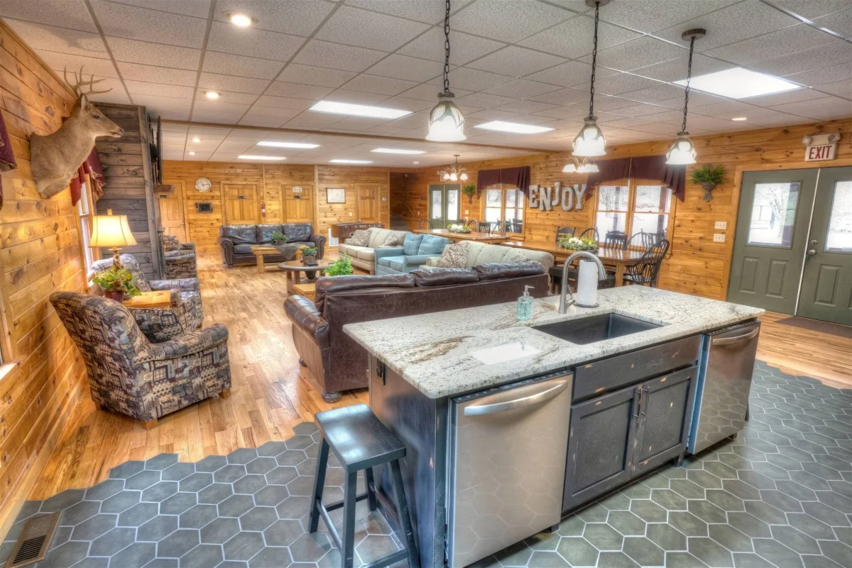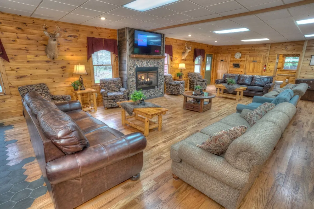 Step inside and gather around the gas-log fireplace in a spacious living area designed for togetherness. Stream your favorite shows on the 57″ smart TV, challenge your crew to a foosball tournament, or settle in for a classic board game night. Whether you’re hosting a family reunion, a milestone birthday, a corporate retreat, or a large group getaway, Deer Crossing Lodge has the space and amenities to make it unforgettable.