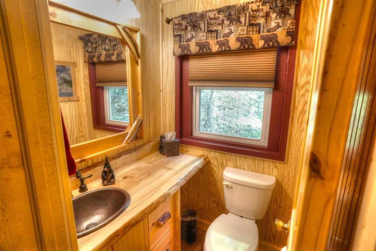 two-and-a-half-bathroom cabin sleeps 4 in comfort and style.